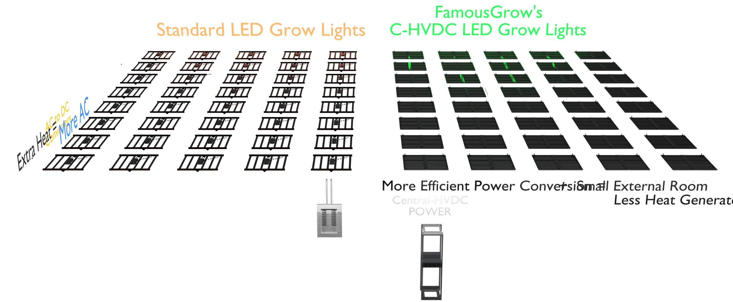 Reduces heat emitted into grow space. Lower fixture maintenance. Fewer points of failure.